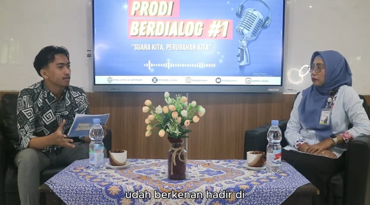 Himpunan Mahasiswa Profesi Teknik Kimia (HMPTK) pada hari Senin, 7 Juli 2025 telah merilis Prodi Berdialog Teknik Kimia 1 yang berbentuk Podcast pada laman Youtube HMPTK UNNES dengan judul โ€œPRODI BERDIALOG #1 | Apa Kabar Teknik Kimiaโ€Syuting video Podcast Prodi Berdialog #1 dilakukan di Ruang Smart Class E2-209 dengan durasi video yaitu 1 jam 21 menit 5 detik yang berisikan mulai dari MBKM, rekognisi, administrasi perkuliahan, sistem perkuliahan, sarana & prasarana, hinngga pasca sarjana (S2) Teknik Kimia UNNES.