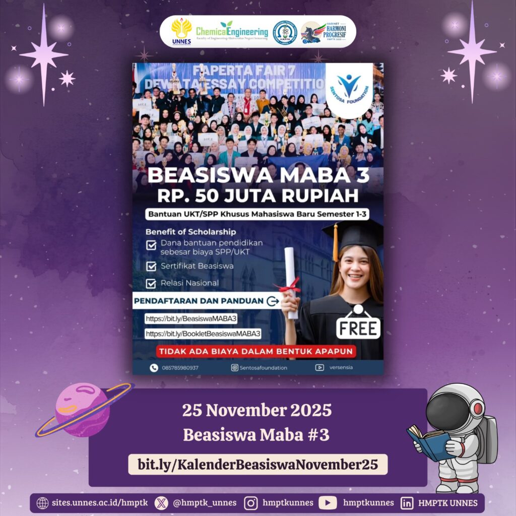 Resmi dibuka!! Ayo segera daftarkan diri kamu. Deadline Beasiswa ini pada tanggal 25 November 2025