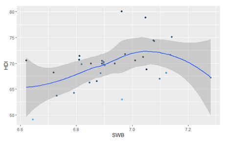 Gambar 2&3. Korelasi HDI & SWB dan GDP & SWB