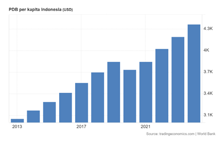 Gambar 1. PDB per kapita Indonesia (USD, 2013โ2023)