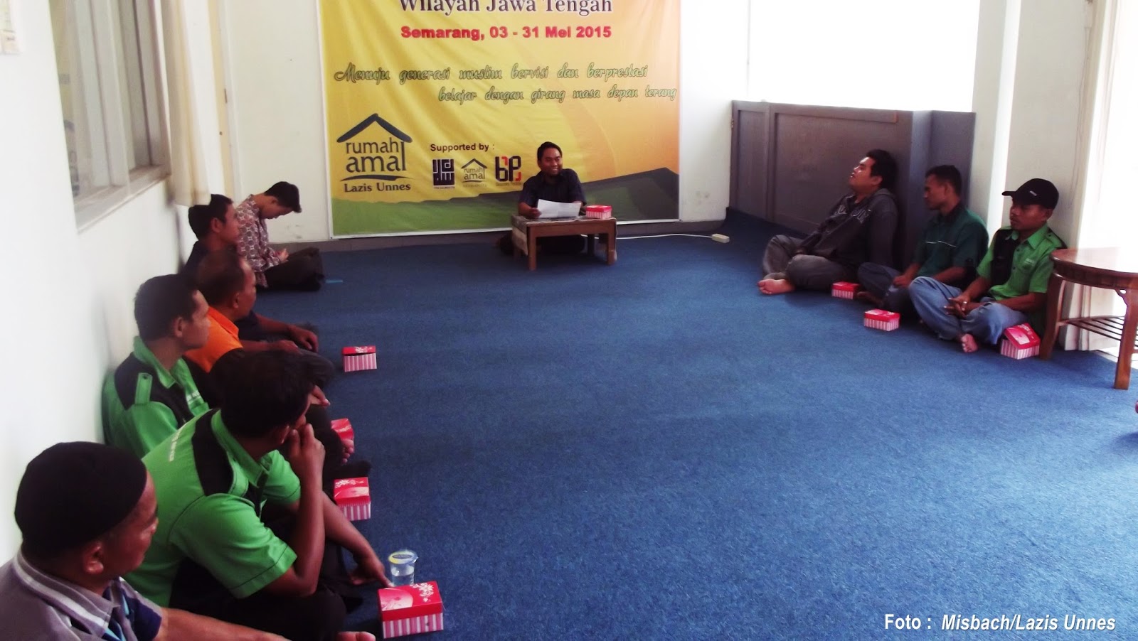 Selama kurang lebih setengah jam, pak Hafiz menjelaskan makna sedekah secara lebih luas kepada para cleaning service yang hadir pada acara tersebut. Acara selesai pukul 10.30 pagi dan langsung dilanjutkan dengan pembagian sembako yang diberikan kepada sekitar 40an orang cleaning service di lingkungan kampus Universitas Negeri Semarang.