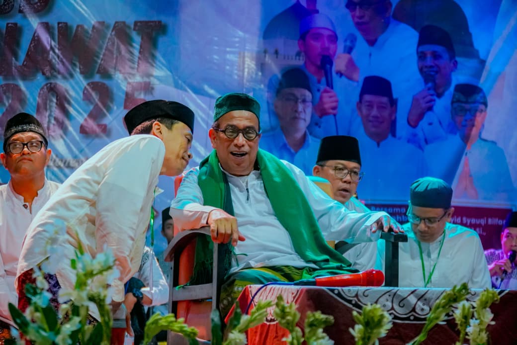 Puncak acara diisi dengan Mauidhohasanah dari dua tokoh agama terkemuka, Gus M. Mahbub Zaki dan Habib Umar bin Ahmad Al-Muthohar. Dalam tausiyah, keduanya menyampaikan pesan moral yang relevan dengan kehidupan generasi muda masa kini. Salah satu topik menarik yang diangkat adalah fenomena sosial yang tengah viral, dijadikan sebagai refleksi pentingnya keteladanan, kesabaran, dan keikhlasan dalam menuntut ilmu. Para ulama menegaskan bahwa pembelajar sejati tidak hanya menimba ilmu agama, tetapi juga perlu meneladani akhlak mulia dan kepribadian luhur sebagaimana dicontohkan Rasulullah SAW. Ceramah yang disampaikan dengan gaya hangat dan penuh hikmah itu berhasil menggugah hati jamaah untuk terus memperkuat iman, memperbanyak sholawat, serta menebarkan kebaikan dalam kehidupan sehari-hari.